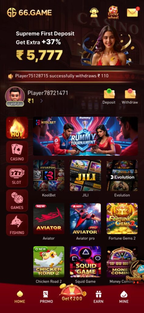 If you enjoy gaming and want to earn while you play, 66 Game APK (66 Game) is worth trying. With its ₹200 Spin & Win Bonus, smooth gameplay, and fast withdrawals, it delivers both excitement and rewards in one place.