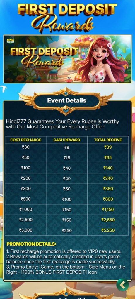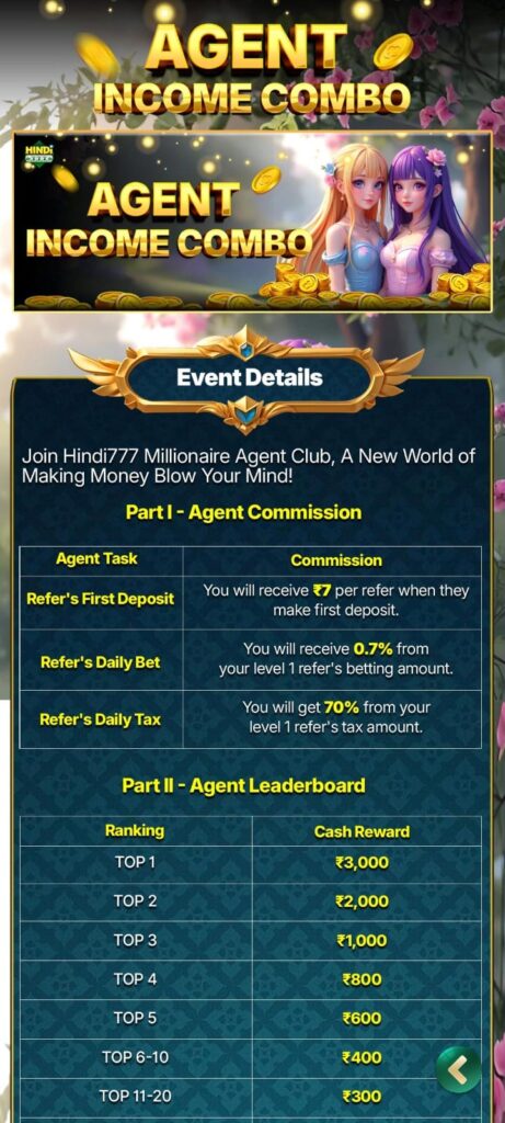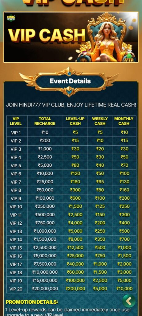 Claiming your bonus on the Hindi 777 Yono App is quick and simple. After downloading and registering on the app, you’ll instantly receive a ₹200 signup bonus in your wallet. You can use this bonus to play Rummy, Teen Patti, or Slot games and win real cash. Additionally, by completing your first deposit, you can unlock extra cashback and referral rewards. Invite friends to join Hindi 777 Yono and earn more bonuses every day!