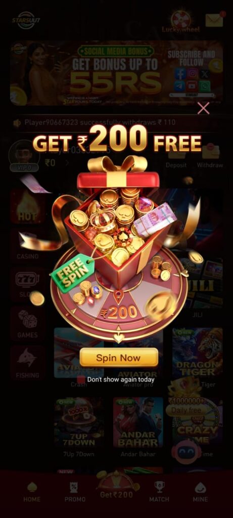 Starsuu7 game is one of India’s trending online earning platforms that lets users play exciting games and win real money instantly. Whether you’re a casual gamer or a pro, Starsuu7 offers a thrilling experience with a ₹200 signup bonus to kickstart your journey.